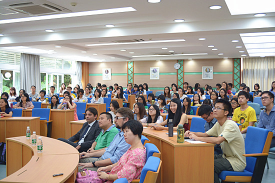 讲座的开始,白思诺先生对本次活动的出席人员表示了衷心的感谢。随后,讲座进入了问答交流环节。白思诺先生首先与从意大利留学归来的学生们进行了交流,让在场的其他学生们大致了解了在意大利的学习生活。他还热情地对在场的同学们所关心的学习、文化生活与奖学金等问题进行了回答。例如,在被问及意大利歌剧对现代生活的影响时,他回答说现代社会的意大利歌剧已不像以往那般普及。同时他也谈到,了解歌剧不能仅仅去享受美妙的声音,更重要的是知晓歌剧的内容与体会其中包含的深刻内涵。