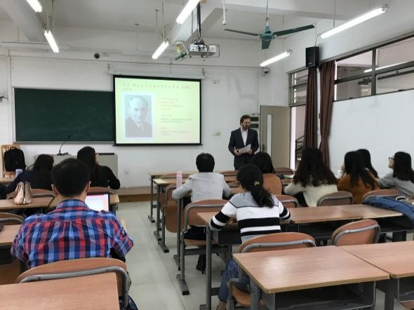 俄语专业本科生和研究生开设了题为《布拉格结构主义学派:穆卡若夫斯基与雅各布森》的讲座。俄语系不少教师也饶有兴致地前来听讲。