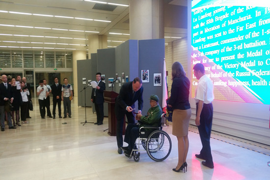 先生出席开幕式并致辞。米哈伊尔•梅德韦杰夫在致辞中指出,今年是世界反法西斯战争胜利70周年,也是中国人民抗日战争胜利70周年和俄罗斯伟大卫国战争胜利70周年。作为亚洲和欧洲的主战场,中俄两国都为这次伟大胜利做出了卓越贡献。中俄两国元首已达成协议,将相互出席对方举办的庆祝和纪念活动,摄影展正是在此背景下举行的。开幕式上,米哈伊尔•梅德韦杰夫代表普京总统向参加苏联远东前线的老战士卢连凡同志颁发了纪念勋章。