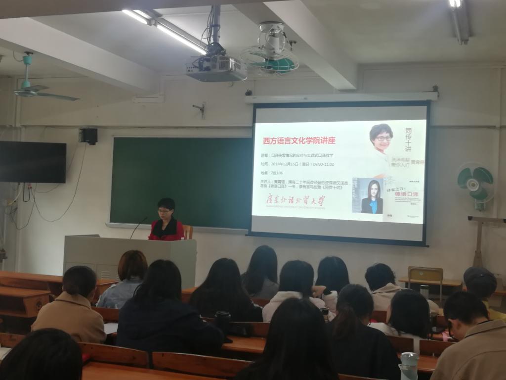 本网讯 2018年12月16日上午九点,德国驻沪总领事馆资深高翻黄霄翎在二教106教室为体育平台