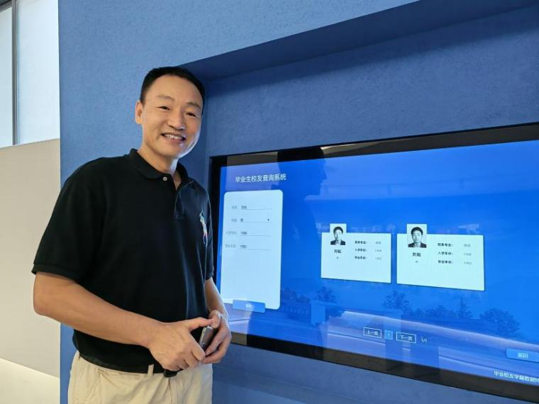 分享会前,魏少娟带刘耘校友参观了校园和校史馆。刘耘在校史馆内使用毕业生校友查询系统找到自己读书时的老照片时,十分喜悦。分享会上,刘耘也回顾了自己早年在广外的学习生活,并对母校的发展变化表示由衷的赞叹和深深的祝福,表示作为广外毕业生要常回母校看看。