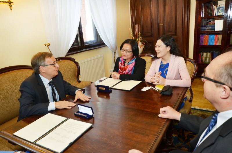 院长杨可、波兰语系系主任茅银辉一行二人应波兰知名学府克拉科夫雅盖隆大学(以下简称“雅大”)之邀访问该大学。