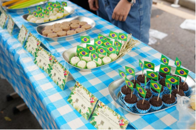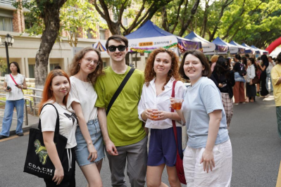 各语系、中文学院、广州市白云区白云外国语中小学、西语校友会等摊位一同开启欧罗巴美食盛会,精心准备琳琅满目的异国风味美食:从俄语摊位的红肠和列巴、西班牙语摊位的巴斯克蛋糕、法语摊位的法棍,到德语摊位的啤酒和香肠、葡萄牙语摊位的特调果汁,再到中文学院摊位的桂花糖,让全校师生足不出校便能体验世界美食文化。广州法语联盟、南国商学院体育平台
