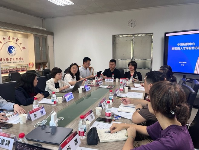 会议室举行会谈,围绕西葡语人才库建设规划及三方合作展开深入交流。